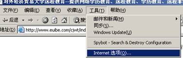 点击IE的“工具(T)”,选择“Internet 选项(O)...”