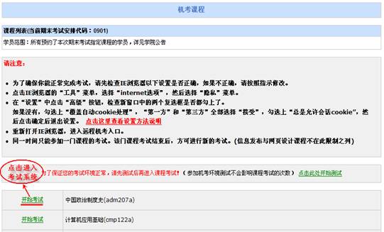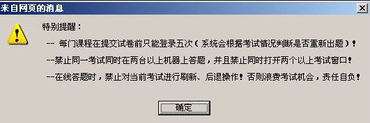 不能同时打开两个 IE 窗口进行同一门课程或者不同课程的在线机考,每次只能一个窗口参加一门在线考试。