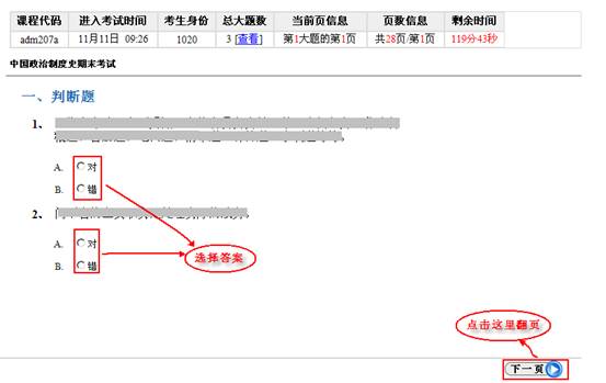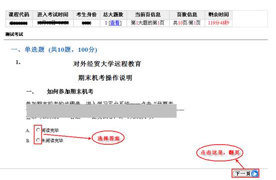 解释:期末机考是远程学员的正常考试内容,有一定的要求,题目内容不允许复制,使用鼠标可以方便地完成测验,如果当前页面你的题都答完了,可以直接点击下一页翻页。